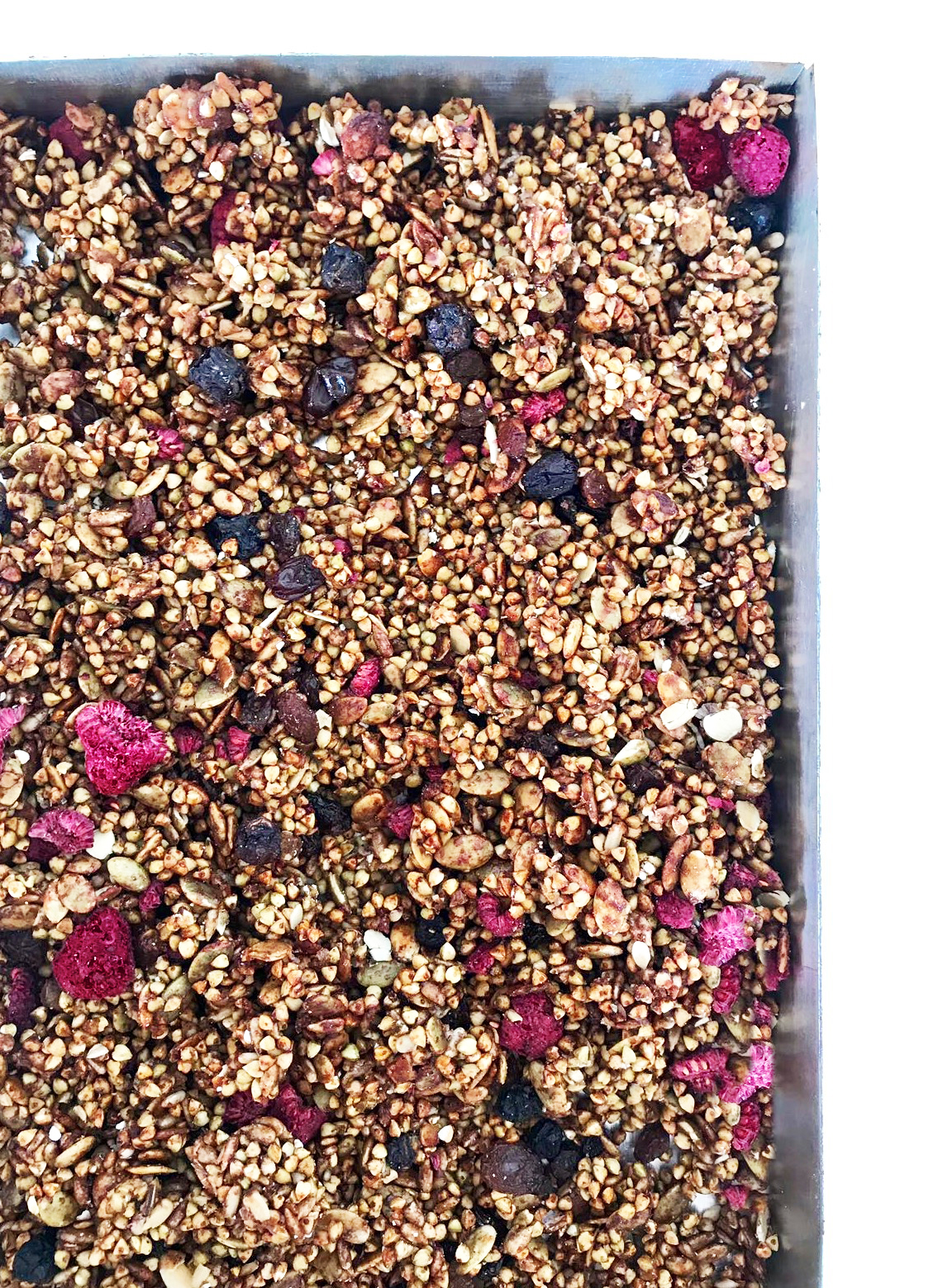 Por ese motivo es mucho mejor que la elabores en casa. A continuación os muestro la receta de una crujiente y saciante granola elaborada con trigo sarraceno, frutos secos, semillas y fruta seca. ¡Sin gluten ni azúcares refinados! Puedes comerla para desayunar, merendar como acompañamiento en tu smoothies o incluso como snack a media mañana.