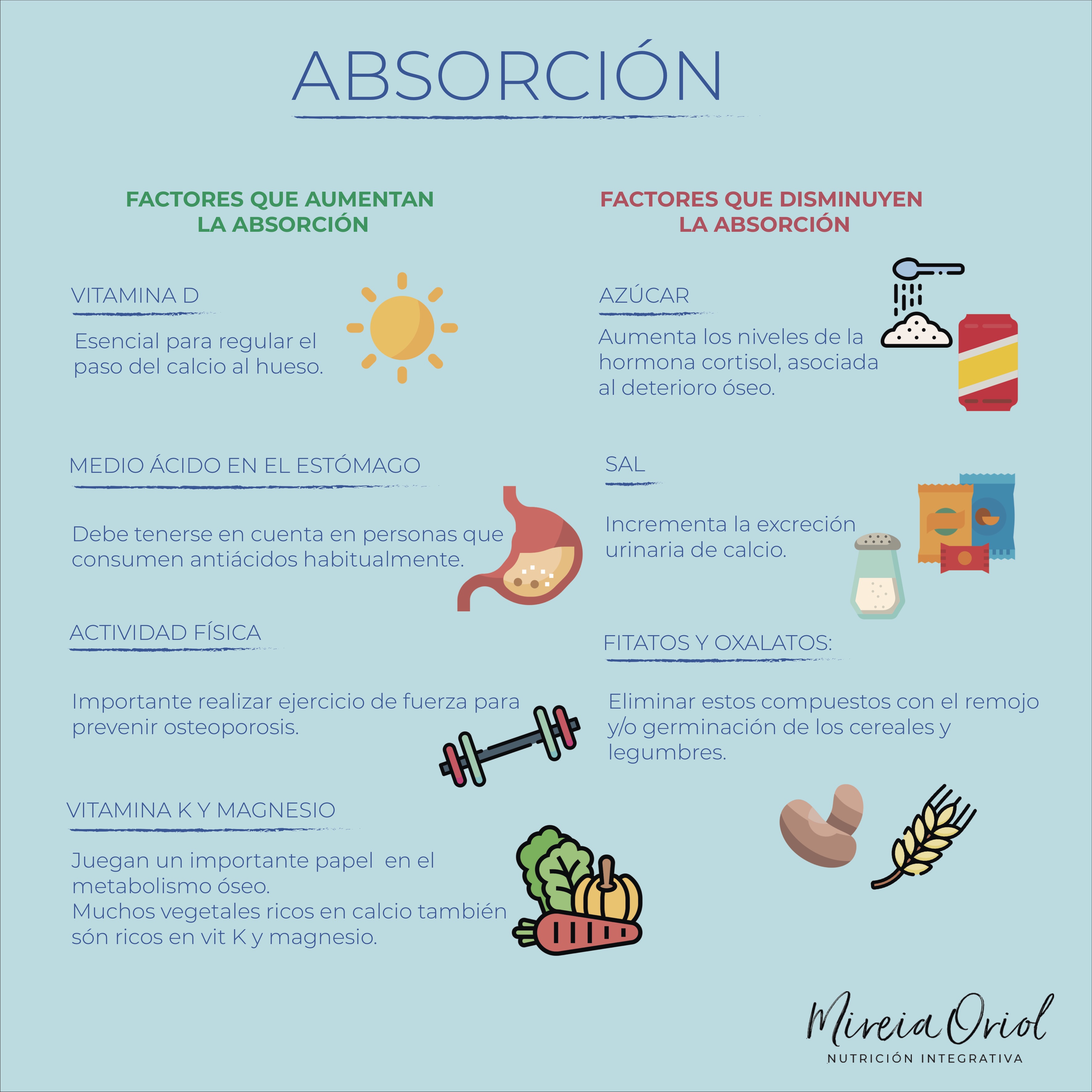 Del calcio ingerido más o menos se absorbe solo un 25%, el resto se excreta. Pero esto no supone ningún problema si tu dieta esta cargada de vegetales. 💚🌿 Algunos de los factores que aumentan su absorción son: