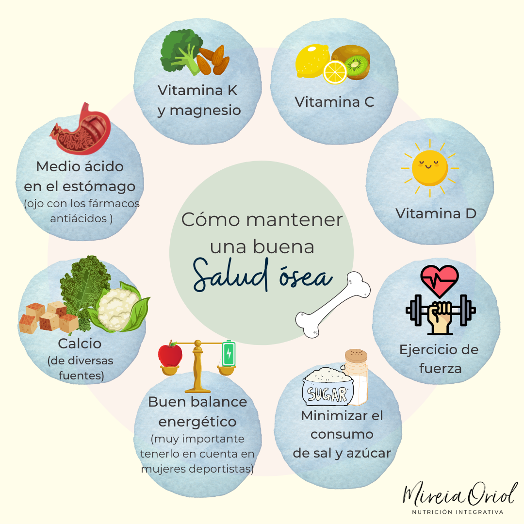 - Vitamina D: Es esencial para regular el paso del calcio al hueso. De nada sirve preocuparnos por nuestros niveles de calcio si tenemos bajos los de vit D.Es muy común tener déficit durante el invierno. Así que controla tus niveles y toma un suplemento si es necesario.