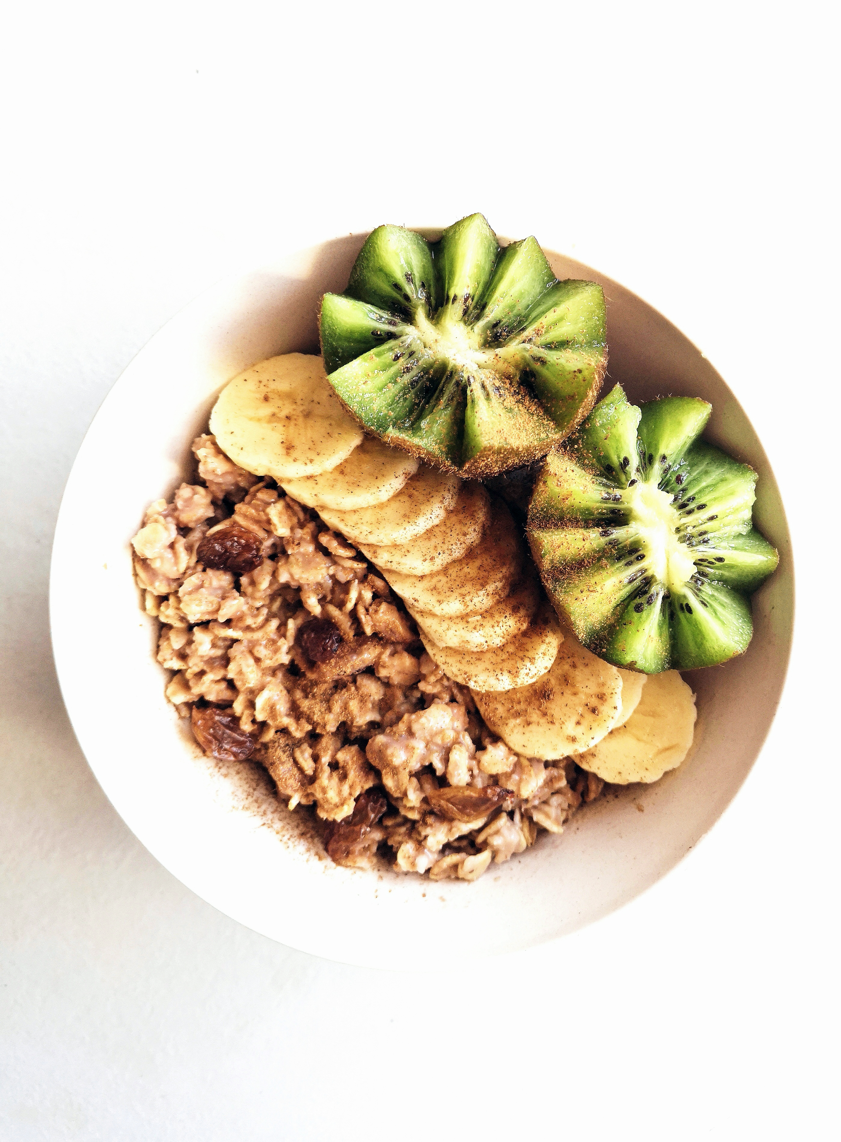 INGREDIENTES (2 personas) 100g de copos de avena integrales 250 ml de bebida vegetal (coco, avena, almendras, arroz..) 1 puñado de pasas 1 cucharadita de