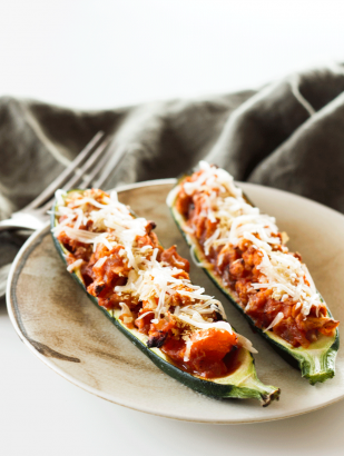 Calabacín relleno de verduras y soja texturizada