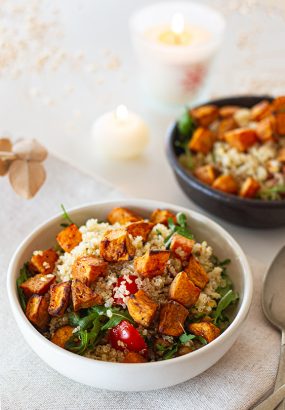 Ensalada de calabaza, quinoa y granada con vinagreta
