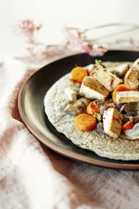 Crepes de trigo sarraceno con verduras y tofu